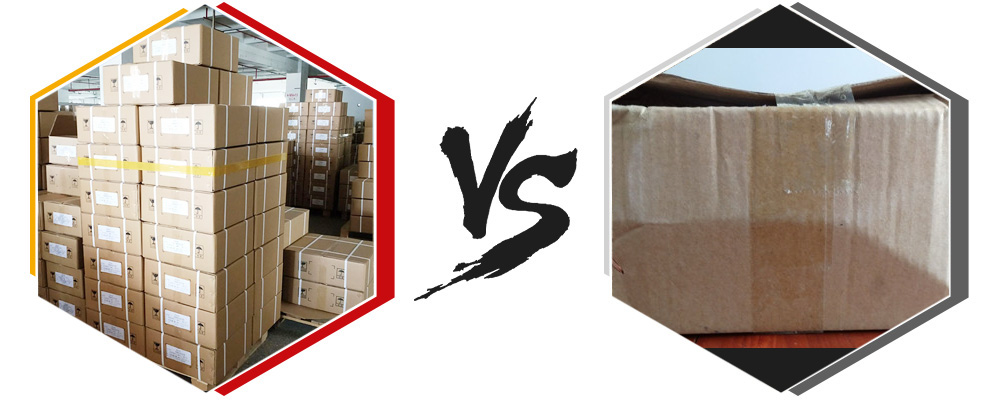其他生產(chǎn)商為降低成本,一般采用普通紙箱,長途運(yùn)輸中很容易造成紙箱破損、變形,內(nèi)包裝使用廉價再生料膠袋包裝,容易破損。 導(dǎo)致問題:包裝變形,容易受潮,貨物損失,甚至中途丟失,誤工誤時。